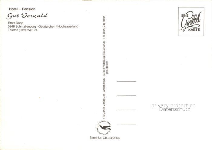 72309314 Schmallenberg Hotel Pension Gut Vorwald postalisch nicht gelaufen Erhaltung siehe scans KatCode: 11110005958040