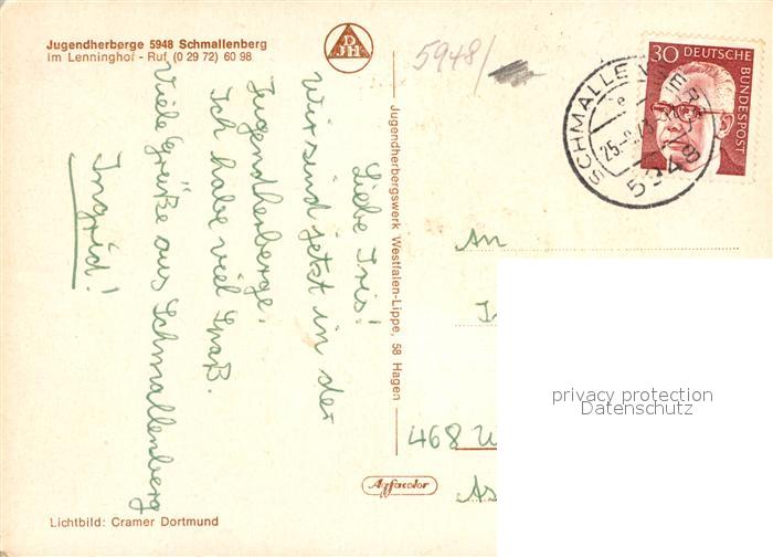 73016360 alte Postkarte Schmallenberg Jugendherberge postalisch gelaufen Erhaltung siehe scans [NatalD47] KatCode: 11110005958040