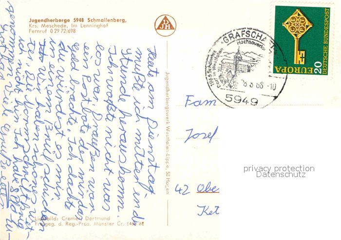 72836474 alte Postkarte Schmallenberg Jugendherberge postalisch gelaufen Erhaltung siehe scans [PaolaD17] KatCode: 11110005958040