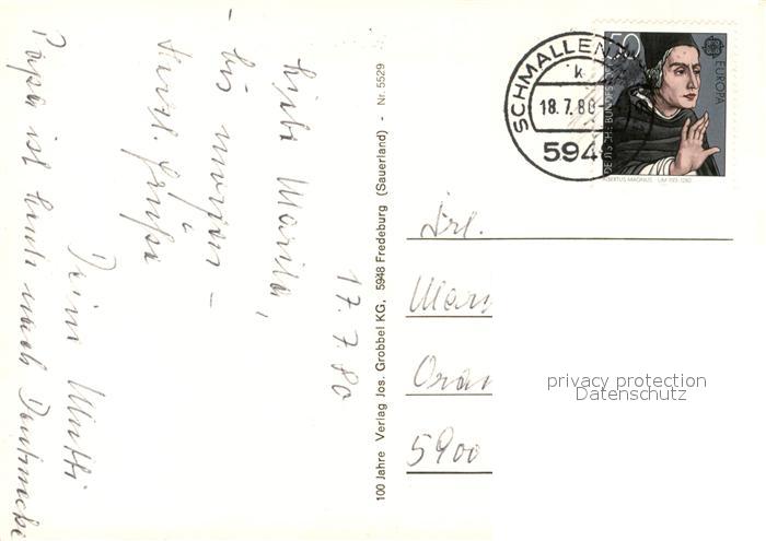 73168052 alte Postkarte Schmallenberg Panorama Kurkonzert Wellenbach Schuetzenplatz postalisch gelaufen Erhaltung siehe scans [KathaD81] KatCode: 11110005958040