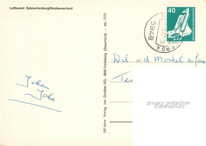 72942092 alte Postkarte Schmallenberg Panorama Luftkurort Fliegeraufnahme postalisch gelaufen Erhaltung siehe scans [FriedD77] KatCode: 11110005958040