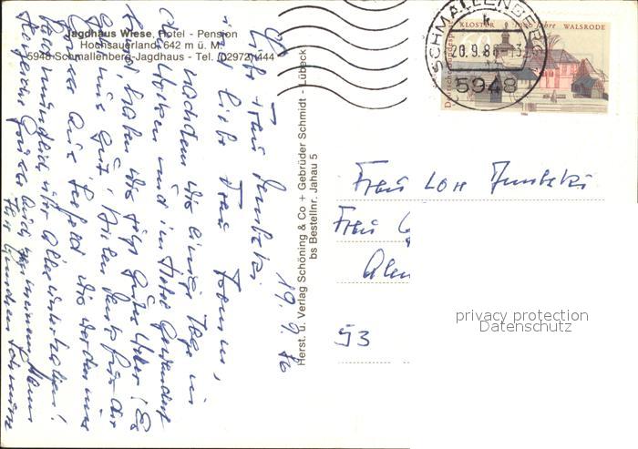 72409924 alte Postkarte Schmallenberg Pension Jagdhaus Wiese postalisch gelaufen Erhaltung siehe scans KatCode: 11110005958040