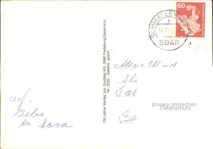 72207367 alte Postkarte Schmallenberg Totalansicht Teilansichten Kirche Panorama postalisch gelaufen Erhaltung siehe scans KatCode: 11110005958040