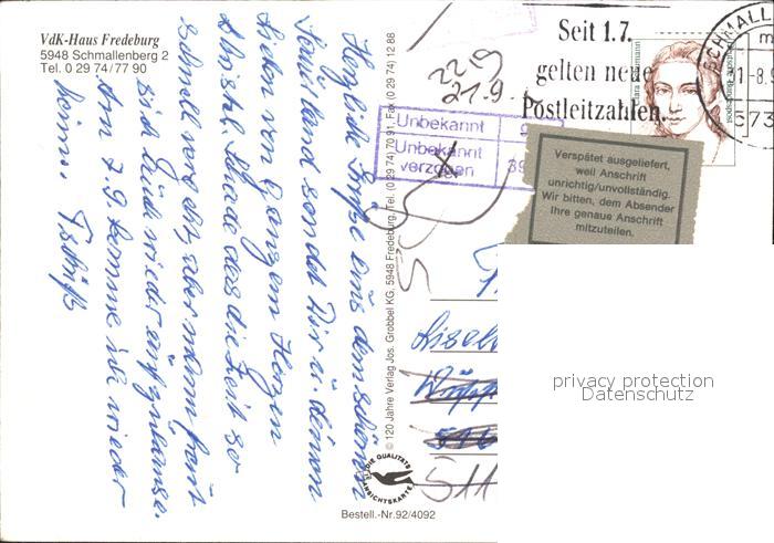 71929523 alte Postkarte Schmallenberg VdK Haus Fredeburg postalisch gelaufen KatCode: 11110005958040