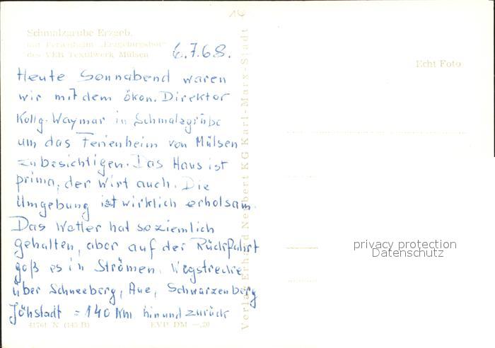 72043132 Schmalzgrube Ferienheim Erzgebirgshof VEB Muelsen postalisch nicht gelaufen Erhaltung siehe scans KatCode: 11110014171190