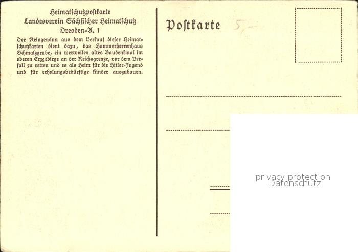 Schmalzgrube Ofen im Hammerherrenhaus Heimatschutzpostkarte postalisch nicht gelaufen Erhaltung siehe scans