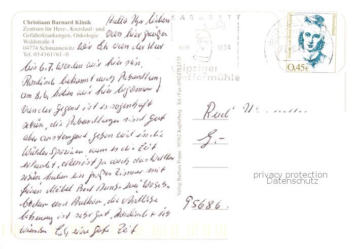 73858766 Schmannewitz Dahlen Sachsen Christiaan Barnard Klinik Hallenbad Park Patientenzimmer postalisch gelaufen Erhaltung siehe scans [FriedD77] alte Postkarte Frie Katcode 11110014389080