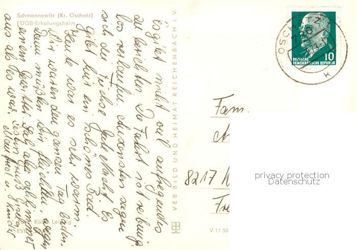 73868626 Schmannewitz Dahlen Sachsen FDGB Erholungsheim postalisch gelaufen Erhaltung siehe scans [WerneD78] alte Postkarte Wern Katcode 11110014389080