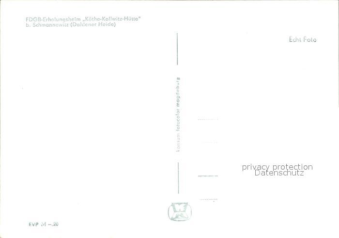 72080061 Schmannewitz FDGB Erholungsheim Kaethe Kollwitz Huette postalisch nicht gelaufen Erhaltung siehe scans KatCode: 11110014389080