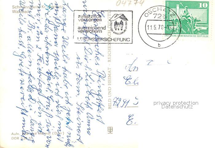 73567103 alte Postkarte Schmannewitz Waldbad Freibad postalisch gelaufen Erhaltung siehe scans [FriedD77] KatCode: 11110014389080