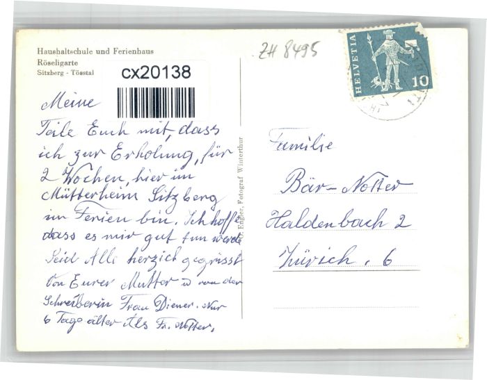 10738348 alte Postkarte Schmidrueti erienhaus Roeseligarte x postalisch gelaufen KatCode: 11470260910534