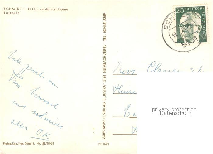 73647163 alte Postkarte Schmidt Nideggen Fliegeraufnahme mit Rurtalsperre postalisch gelaufen Erhaltung siehe scans [WerneD78] KatCode: 11110005358044