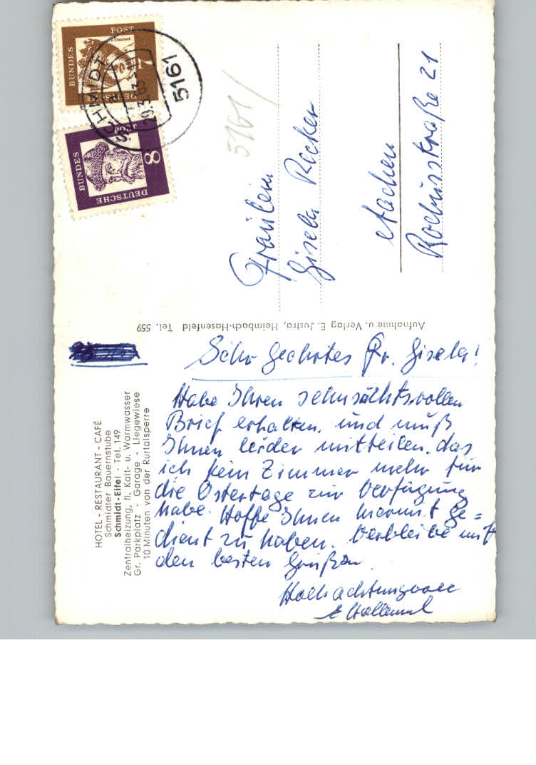 31137226 Schmidt Nideggen Hotel – Restaurant – Cafe Schmidter Bauernstube postalisch nicht gelaufen KatCode: 11110005358044