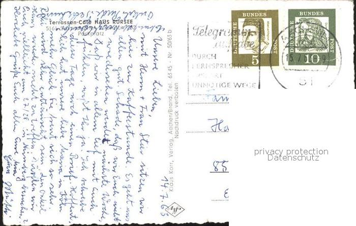 71939737 alte Postkarte Schmidt Terrassen Cafe Haus Rursee postalisch gelaufen Erhaltung siehe scans KatCode: 11110005358044