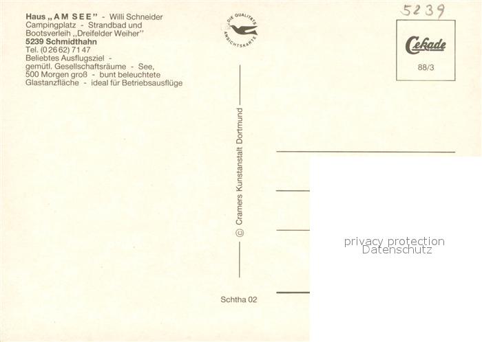 73657516 Schmidthahn Cafe Restaurant Haus am See Dreifelder Weiher im Westerwald postalisch nicht gelaufen Erhaltung siehe scans [FriedD77] KatCode: 11110007143294