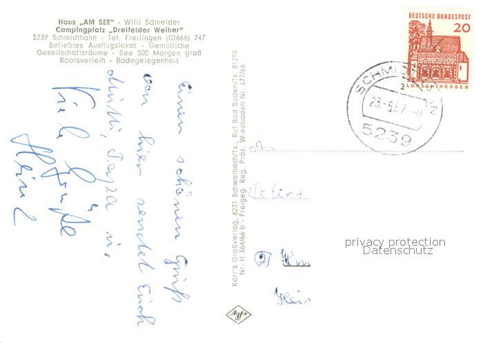 73730405 alte Postkarte Schmidthahn Haus am See Campingplatz Dreifelder Weiher postalisch gelaufen Erhaltung siehe scans [WerneD78] KatCode: 11110007143294