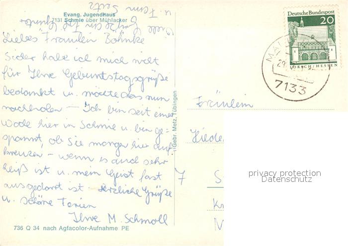 73087350 alte Postkarte Schmie Evangelisches Jugendhaus postalisch gelaufen Erhaltung siehe scans [PaolaD17] KatCode: 11110008236038
