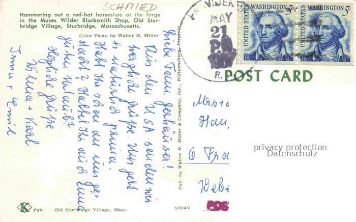 74052919 alte Postkarte Schmied Blacksmith Forgeron– Moses Wilder Blocksmith Old Sturbridge Village Sturbridge postalisch gelaufen Erhaltung siehe scans [IrynaD87] KatCode: 22060