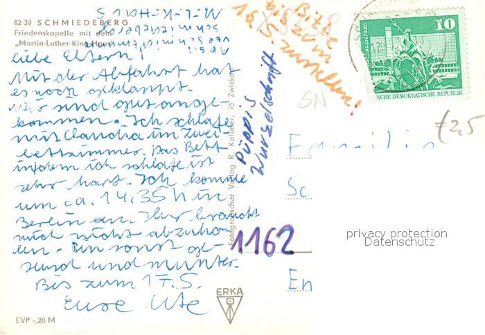 73035818 alte Postkarte Schmiedeberg Dippoldiswalde Friedenskapelle Martin Luther Kinder Haus postalisch gelaufen Erhaltung siehe scans [KathaD81] KatCode: 11110014290080