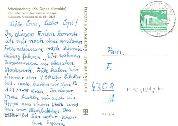 73033511 alte Postkarte Schmiedeberg Dippoldiswalde Friedenskapelle Martin Luther King Haus Speisesaal Der Fischzug postalisch gelaufen Erhaltung siehe scans [WerneD78] KatCode: 11110014290080