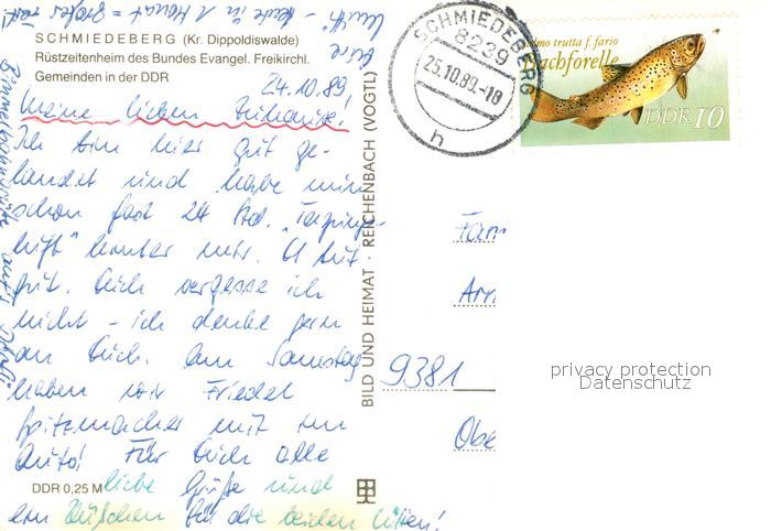 73031676 alte Postkarte Schmiedeberg Dippoldiswalde Friedenskapelle Treppenhaus Martin Luther King Haus Speisesaal Der Fischzug postalisch gelaufen Erhaltung siehe scans [WerneD78] KatCode: 11110014290080