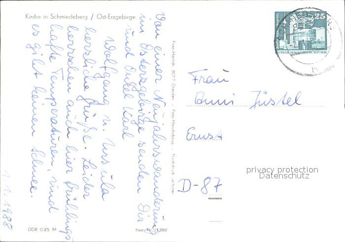 72329948 alte Postkarte Schmiedeberg Dippoldiswalde Kirche postalisch gelaufen Erhaltung siehe scans KatCode: 11110014290080