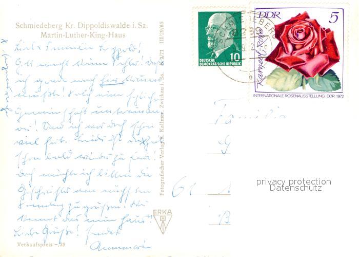 72968698 alte Postkarte Schmiedeberg Dippoldiswalde Martin Luther King Haus postalisch gelaufen Erhaltung siehe scans [FriedD77] KatCode: 11110014290080