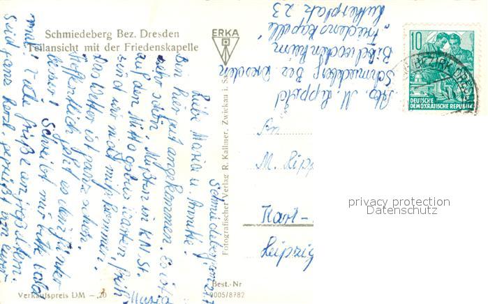 72962985 alte Postkarte Schmiedeberg Dippoldiswalde mit Friedrichskapelle postalisch gelaufen Erhaltung siehe scans [LiesaD40] KatCode: 11110014290080