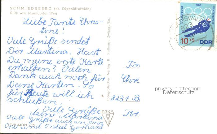 72362620 alte Postkarte Schmiedeberg Dippoldiswalde Naundorfer Weg postalisch gelaufen Erhaltung siehe scans KatCode: 11110014290080