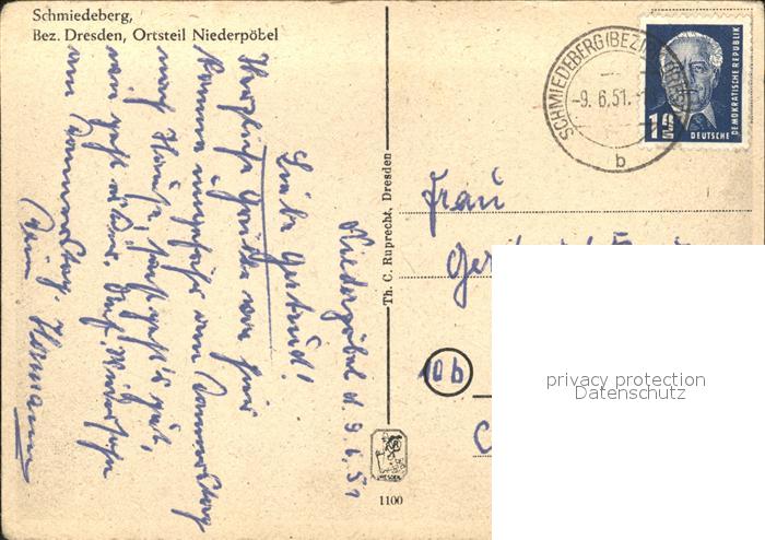 71930993 alte Postkarte Schmiedeberg Dippoldiswalde OT Niederpoebel Panorama postalisch gelaufen Erhaltung siehe scans KatCode: 11110014290080
