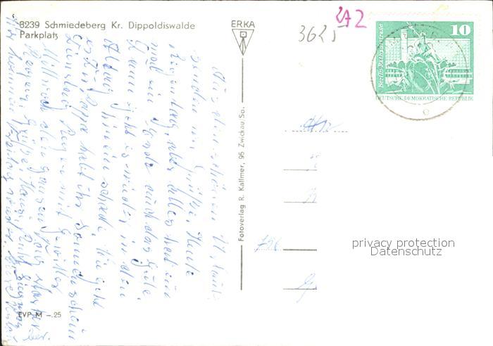 72030625 alte Postkarte Schmiedeberg Dippoldiswalde Parkplatz postalisch gelaufen Erhaltung siehe scans KatCode: 11110014290080