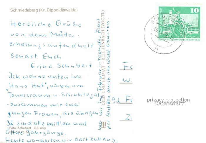 73034457 alte Postkarte Schmiedeberg Dippoldiswalde Stadtblick postalisch gelaufen Erhaltung siehe scans [WerneD78] KatCode: 11110014290080