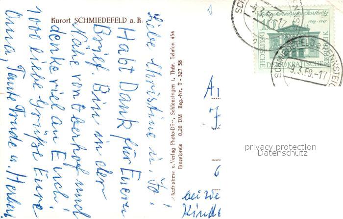 73020476 alte Postkarte Schmiedefeld Rennsteig postalisch gelaufen Erhaltung siehe scans [NatalD47] KatCode: 11110016070046