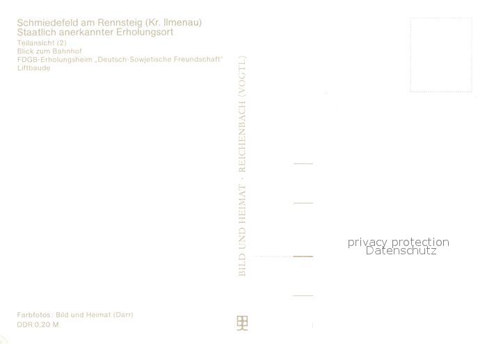 73061730 Schmiedefeld Rennsteig Bahnhof FDGB Erholungsheim DSF Liftbaude Winterpanorama postalisch nicht gelaufen Erhaltung siehe scans [FriedD77] KatCode: 11110016070046