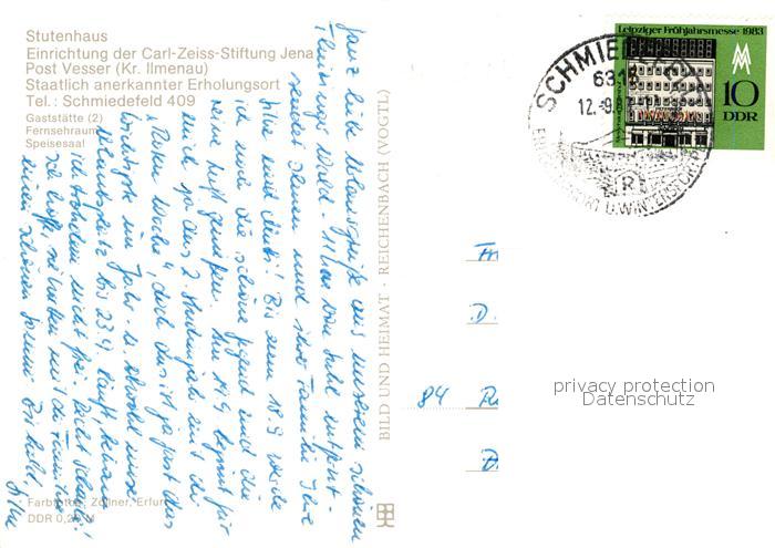 73229722 alte Postkarte Schmiedefeld Rennsteig Berghotel Stutenhaus Gaststaette Fernsehraum Speisesaal postalisch gelaufen Erhaltung siehe scans [FriedD77] KatCode: 11110016070046