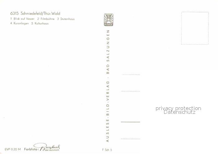 72919600 Schmiedefeld Rennsteig Blick auf Vesser Filmbuehne Stutenhaus Kuranlagen Kulturhaus postalisch nicht gelaufen Erhaltung siehe scans [FriedD77] KatCode: 11110016070046