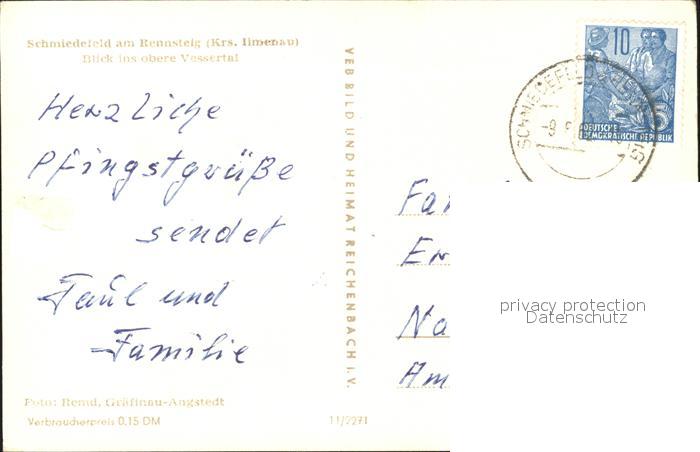 71838463 alte Postkarte Schmiedefeld Rennsteig Blick ins obere Vessertal postalisch gelaufen Erhaltung siehe scans KatCode: 11110016070046