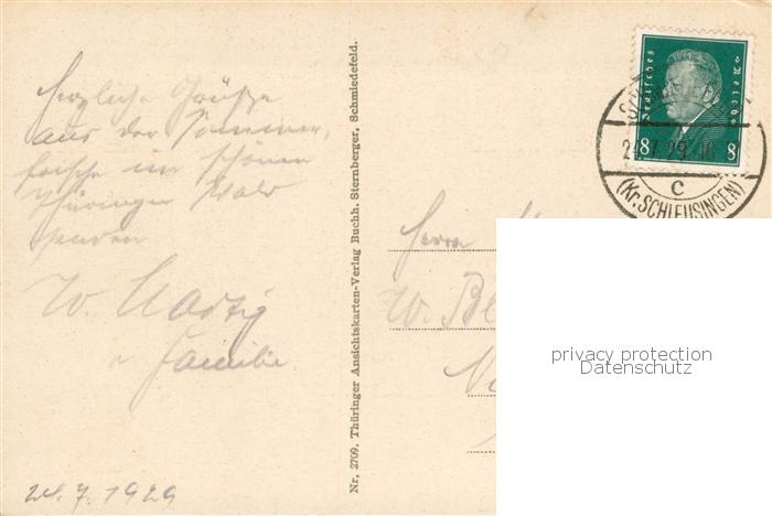 73770886 alte Postkarte Schmiedefeld Rennsteig Blick vom Stutenhaus postalisch gelaufen Erhaltung siehe scans [WerneD78] KatCode: 11110016070046