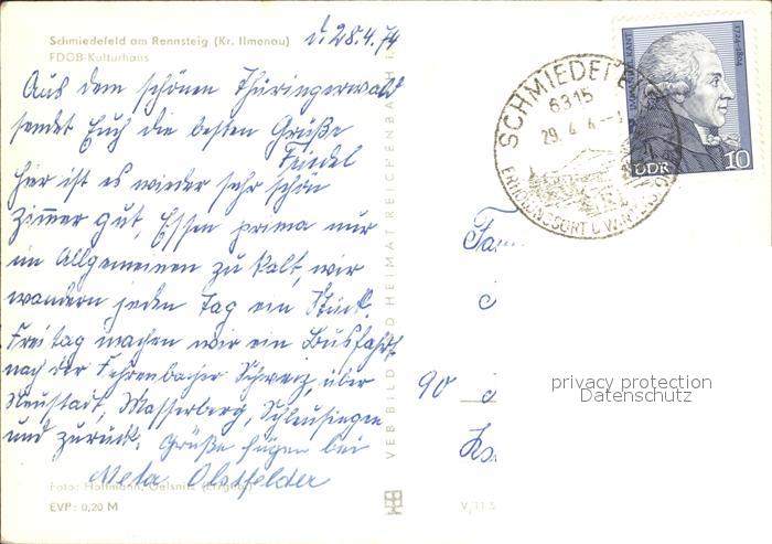 alte Postkarte Schmiedefeld Rennsteig FDGB Kulturhaus postalisch gelaufen Erhaltung siehe scans