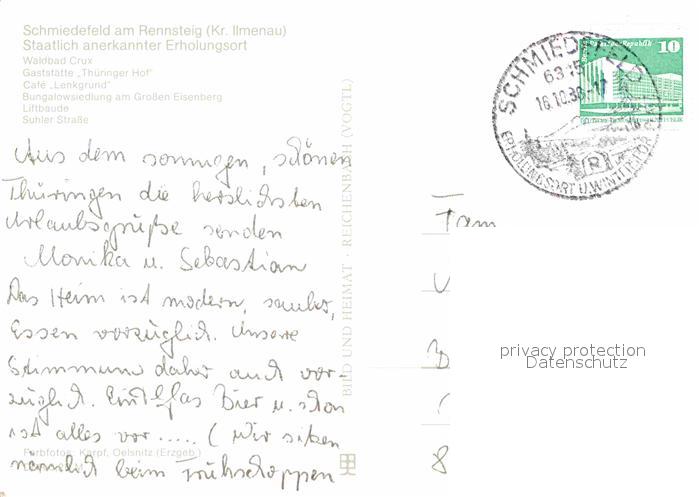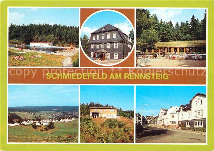 72620305 alte Postkarte Schmiedefeld Rennsteig Freibad Restaurant Thueringer-Hof Cafe Lenkgrund Liftbaude postalisch gelaufen Erhaltung siehe scans [LiesaD40] KatCode: 11110016070046