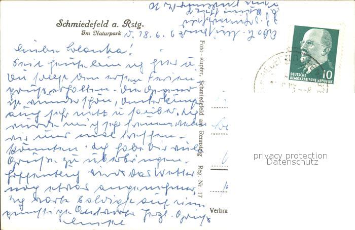 72280849 alte Postkarte Schmiedefeld Rennsteig Naturpark postalisch gelaufen Erhaltung siehe scans KatCode: 11110016070046