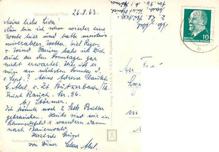 73924806 alte Postkarte Schmiedefeld Rennsteig Panorama postalisch gelaufen Erhaltung siehe scans [FriedD77] KatCode: 11110016070046