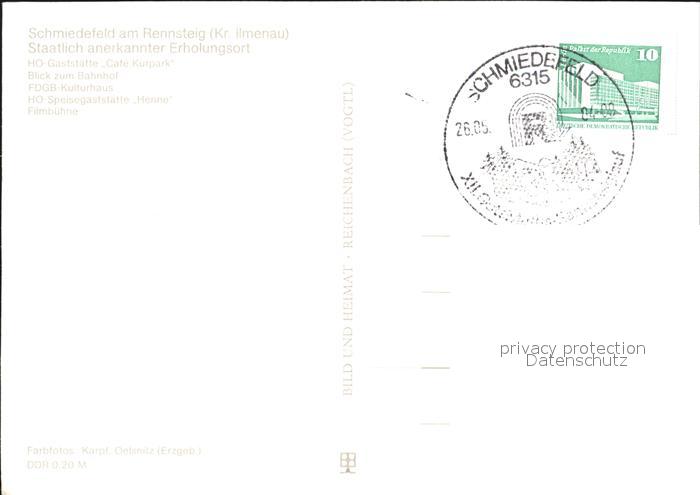 72322938 alte Postkarte Schmiedefeld Rennsteig Restaurant Cafe Kurpark Bahnhof Kulturhaus postalisch gelaufen Erhaltung siehe scans KatCode: 11110016070046