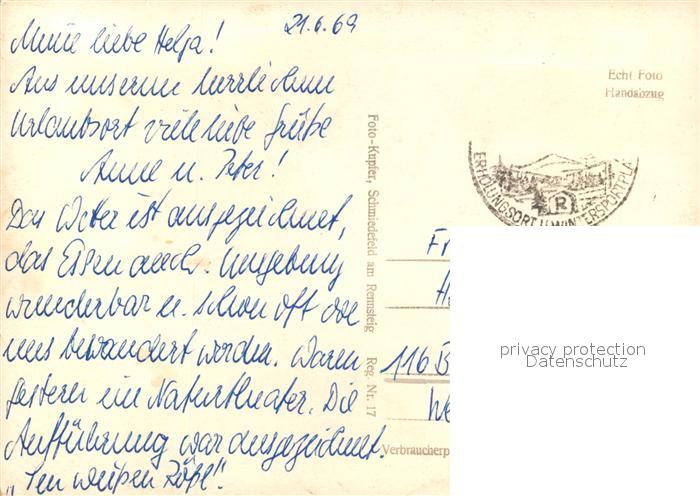 73567178 alte Postkarte Schmiedefeld Rennsteig Stadtpanorama Strassenpartien postalisch gelaufen Erhaltung siehe scans [FriedD77] KatCode: 11110016070046