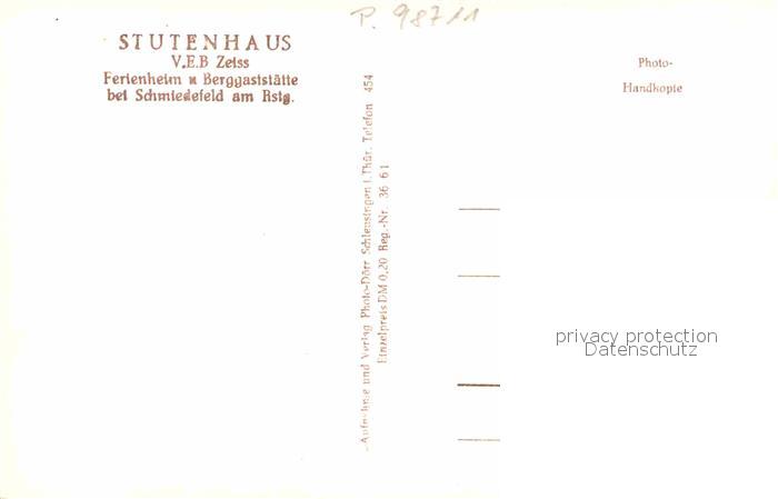 72682119 Schmiedefeld Rennsteig Stutenhaus postalisch nicht gelaufen Erhaltung siehe scans [AndreD76] KatCode: 11110016070046