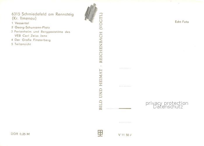 72964943 Schmiedefeld Rennsteig Vessertal Georg-Schumann-Platz Ferienheim VEB Carl Zeiss Jena Finsterberg postalisch nicht gelaufen Erhaltung siehe scans [LiesaD40] KatCode: 11110016070046