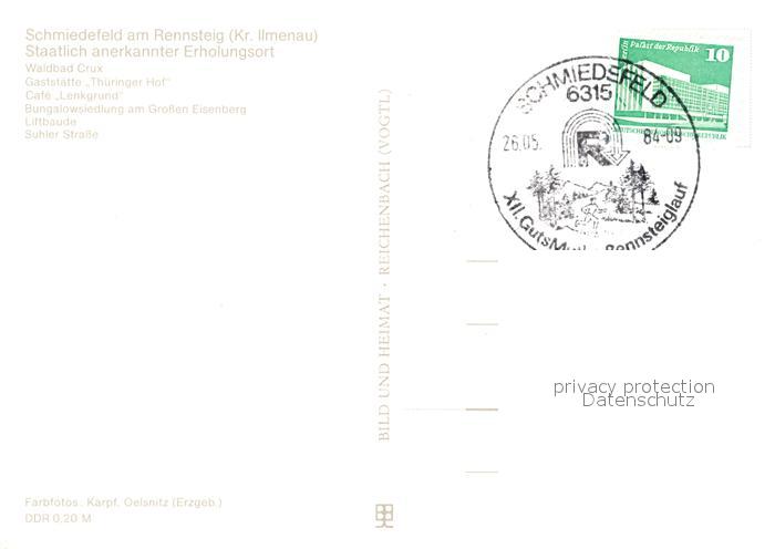 73061729 alte Postkarte Schmiedefeld Rennsteig Waldbad Gaststaette Cafe Lenkgrund Bungalowsiedlung Liftbaude Suhler Strasse postalisch gelaufen Erhaltung siehe scans [FriedD77] KatCode: 11110016070046