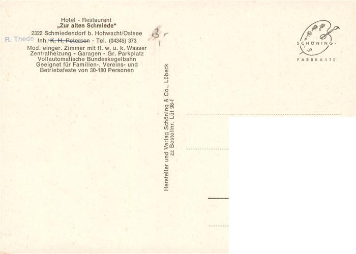 73915429 Schmiedendorf Hotel Restaurant Zur alten Schmiede Gastraum Kegelbahn postalisch nicht gelaufen Erhaltung siehe scans [FriedD77] KatCode: 11110001057030