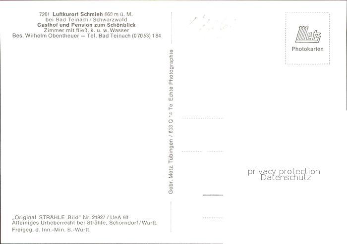 41768795 Schmieh Gasthof Pension zum Schoenblick Luftkurort Schwarzwald Fliegeraufnahme Straehle Bild Nr. 21927 postalisch nicht gelaufen Erhaltung siehe scans KatCode: 11110008235084
