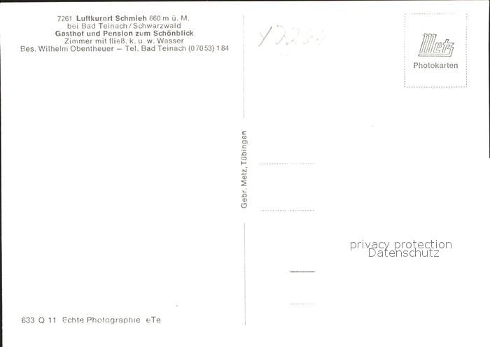 41768793 Schmieh Gasthof Pension zum Schoenblick Luftkurort Schwarzwald postalisch nicht gelaufen KatCode: 11110008235084